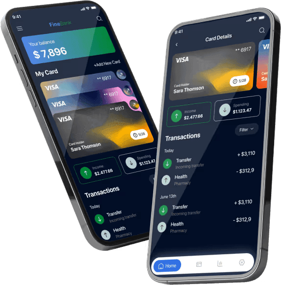 Modern FineBank app design delivering secure digital banking, smooth navigation, and user-focused UI experience.
