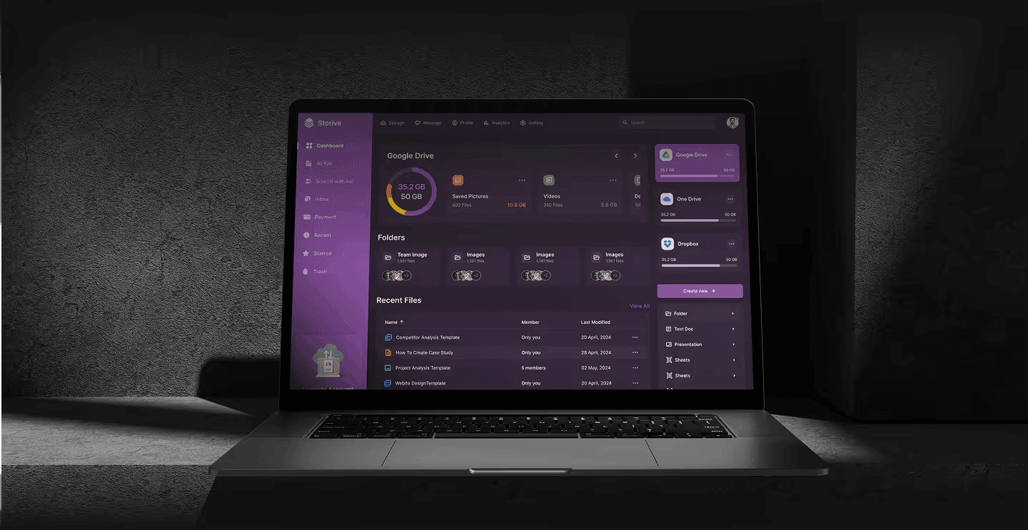 Modern drive storage dashboard design with intuitive UI, real-time file management, analytics, and seamless user experience.